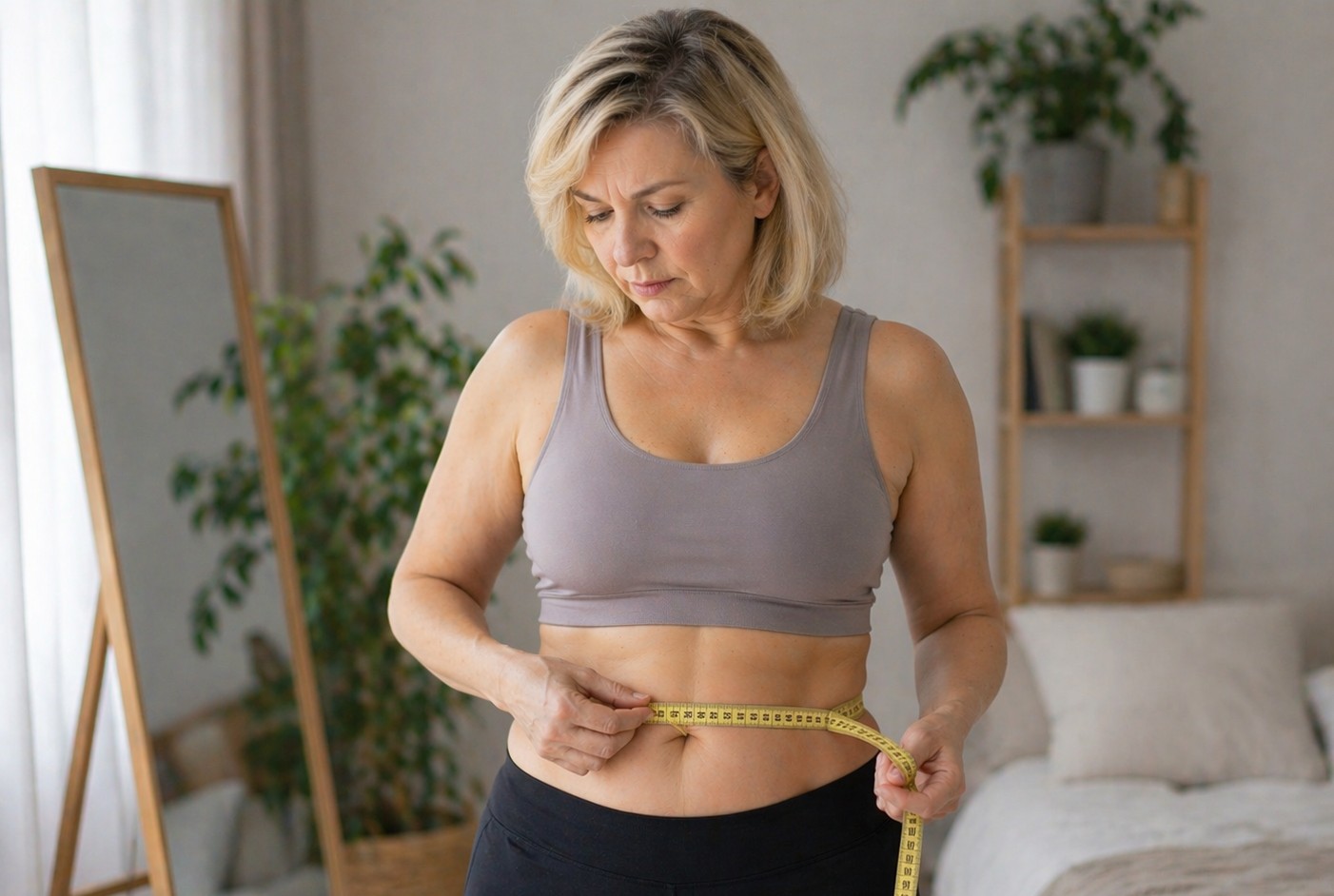 стрелка на весах может колебаться, питание выстроено, физическая активность присутствует — но силуэт остаётся прежним. Живот сохраняет выпуклость, бока не уменьшаются, а ощущение «плотного центра» в теле не появляется.